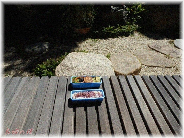 縁側で一人でお弁当を広げていると、トメが来て