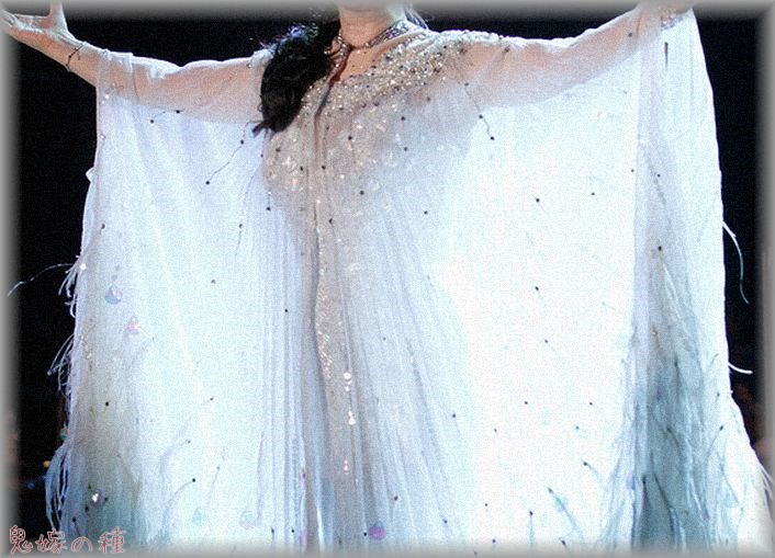 ジュディオングみたいな服で、阿波おどりみたいな感じで手をひらひらさせている。