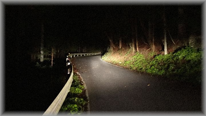 街灯もなく、真っ暗な道なので、速度を緩めて走行していくと、