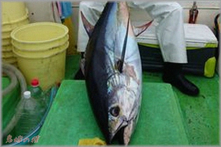 マグロ1匹、その他普通サイズの魚4匹を釣って