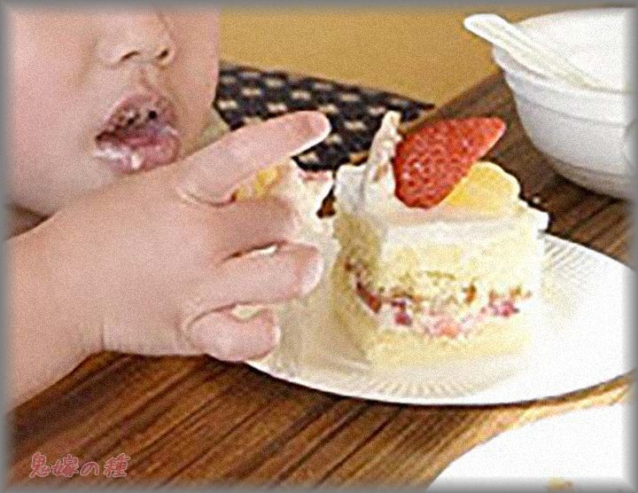 息子にケーキを見せて、あーんと食べさせたらしい。